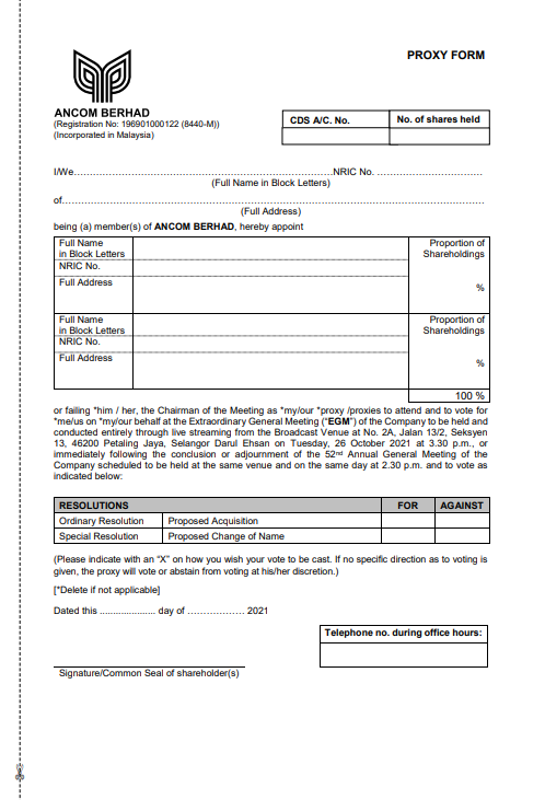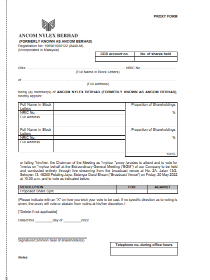 Proxy Form Download